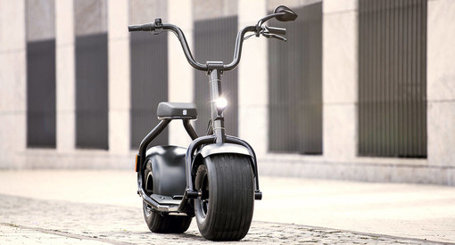 It’s a scooter and a scooter. The deceptively minimalistic Scrooser looks like a manual push scooter until the electric impulse motor and battery pack kick in.
