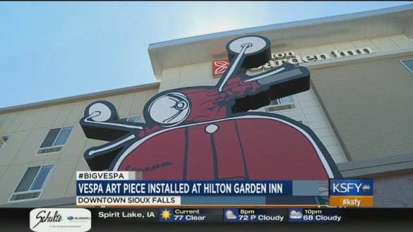 06.30.17 by AROC-Bonneville Vespa art piece installed at Hilton Garden Inn This week, the Hilton Garden Inn installed a big art piece. The 16-foot red Vespa will be on display for three years. Source: Vespa art piece installed at Hilton Garden Inn Share this: Click to share on X (Opens in new window) X Click to share on Facebook (Opens in new window) Facebook Like Loading... Related