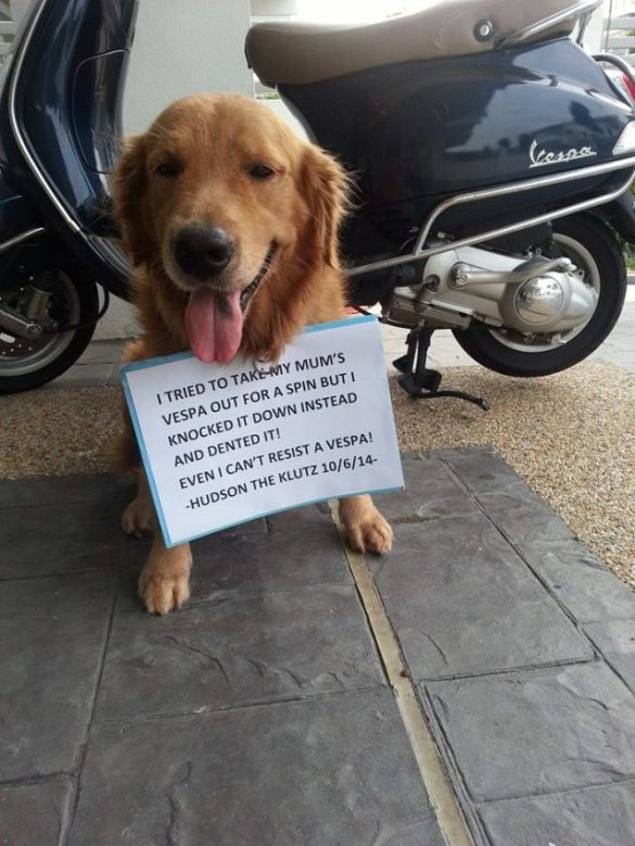 This is Hudson. I think he got fed up of watching me ride off on the Vespa and decided one night to sneak it out and ride it himself.