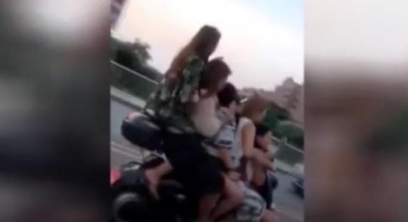 Two’s reasonable. Three’s a crowd. And five… well, five people on a scooter is just unreal.