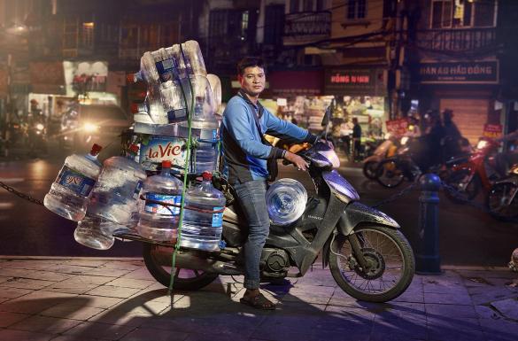 A photographer has captured portraits of delivery drivers in Hanoi carrying some impressive loads on the back of their mopeds. British photographer Jon Enoch is fascinated by the way couriers