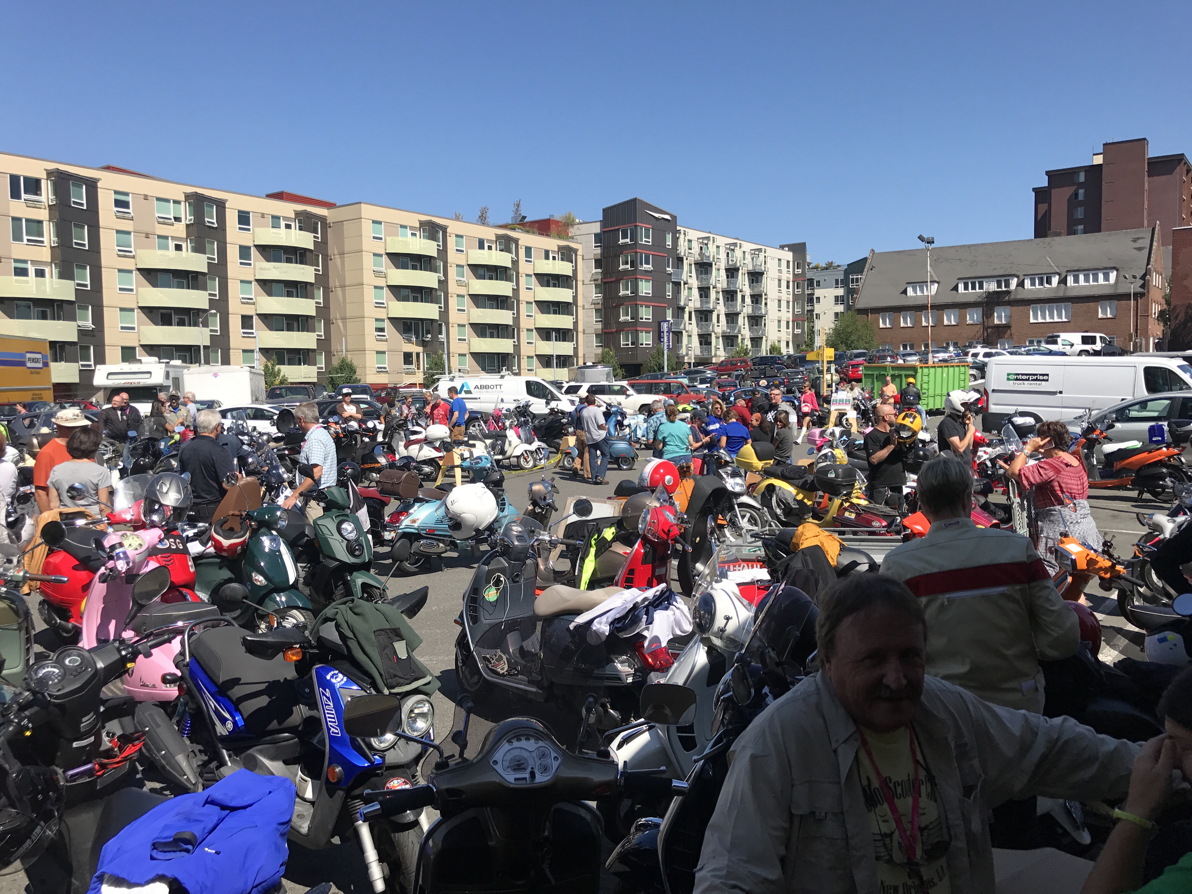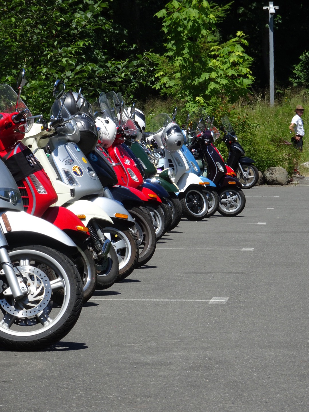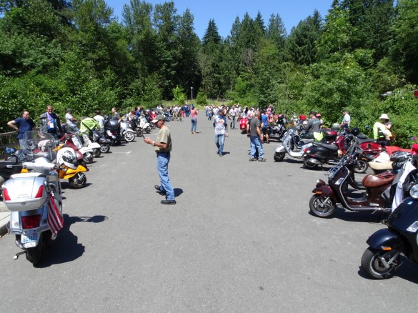 It was a beautiful to ride. The weather was perfect and The scenery was stunning. Our first ride of the event had more than 100 scooters involved and took us to Snoqualmie Falls.
